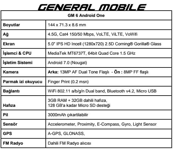 “GM 6 ile sadece bir akıllı telefon değil, aynı zamanda kullanıcısının adına düşünen, onun hayatını kolaylaştıran özellikleri ve uygulamaları bir araya getirdik. Günümüzde fotoğraf çekimi selfie ile bütünleştiği için flaşlı 8 MP ön kamera ve dual tone flaşlı 13 MP arka kamera ile birlikte kullanıcılarımıza sınıfında lider bir fotoğraf deneyimi yaşatacağız. Kullanıcılar fotoğraf çekmeyi çok seviyor ama hafıza sorunu ile karşılaşıyor. Hafıza sorunu yaşayan kullanıcılara, GM 6 ile yüklü halde gelen Google Fotoğraflar uygulamasının güncel versiyonu ile Sınırsız ve Ücretsiz Depolama sunuyoruz. Böylece, kullanıcılarımız geliştirdiğimiz kamera ile doyasıya, sınırsız fotoğraf çekebilecek, videolarını kaydedebilecekler. Çektiği her fotoğraf ve videoya, ister bilgisayarından, isterse cep telefonundan kolayca ulaşabilecekler. Bununla da kalmayacak telefona yine yüklü olarak gelen kolay ve yüksek kaliteli görüntülü konuşma uygulaması Google Duo ile sevdiklerini mesafelere aldırmadan görüntülü arayabilecekler. Mediatek işbirliği ile geliştirilen 64 Bit mimarisine sahip MT6737T (4×1.5GHz) güçlü işlemci ve 4.5G modem sayesinde kullanıcılarımız hızlı interneti telefonlarında deneyimleyebilecekler. Cihazı geliştirirken, tek elle kullanılabilecek en büyük ekran olan 5 inç boyutunu tercih ettik ve Corning tarafından lanse edilen en dayanıklı ekran camı olan Gorilla Glass ekranı kullanarak GM 6 Android One’ı geliştirdik.”