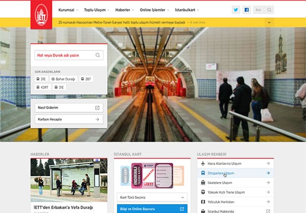 Günlük 250 bine yakın ziyaretçi sayısı bulunan İETT’nin web sitesi www.iett.gov.tr yenilendi. Kullanıcı kolaylığı ve teknoloji trendlerinin göz önüne alındığı site mobil kullanım kolaylığı ile de fark yaratıyor. En çok ziyaret edilen kamu siteleri arasında yer alan İETT web sitesi, yüzde 32.40 oranı ile organik ziyaretçi oranı en yüksek olan site olma özelliği taşıyor.