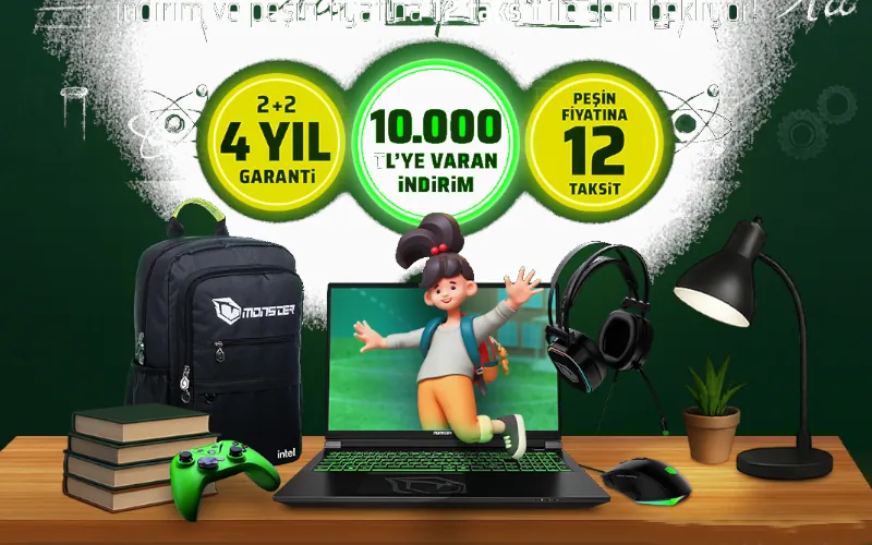 Monster, yeni eğitim öğretim yılı öncesi başlattığı “Okula Dönüş Kampanyası” ile teknoloji ihtiyaçlarını karşılamak isteyen öğrenci, veli ve eğitimcilere özel avantajlar sunuyor. 1 Ağustos – 30 Eylül 2025 tarihleri arasında geçerli kampanya kapsamında, Monster markalı notebook ürünlerinde 4 yıla varan garanti, 10.000 TL’ye kadar indirim ve vade farksız taksit seçenekleri yer alıyor.