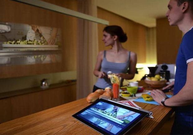 Eğer siz de soğuk hava ve kar nedeniyle evde mahsur kaldıysanız, keyfini Lenovo’nun yeni projektörlü tableti Yoga Tablet 2 Pro ile çıkarın. Mutfak duvarına asacağınız tabletinizden tarifini takip ettiğiniz yemeği pişirin ya da battaniyenin altına girip projektörle yansıttığınız filmi izlemenin keyfini yaşayın