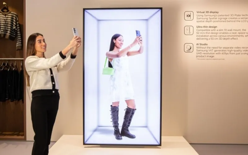Samsung’un endüstriyel ekran portföyüne eklenen Spatial Signage, patentli 3D Plaka teknolojisi sayesinde özel ekipman gerektirmeden üç boyutlu derinlik hissi sunuyor. LCD panelin arkasına konumlandırılan bu teknoloji, 2D içeriklerin netliğini korurken mekânsal bir 3D algı oluşturuyor. Çözüm; perakende alanları, lüks mağazalar, müzeler ve eğlence mekânlarında ürün ve içeriklerin daha görünür hale gelmesini amaçlıyor.