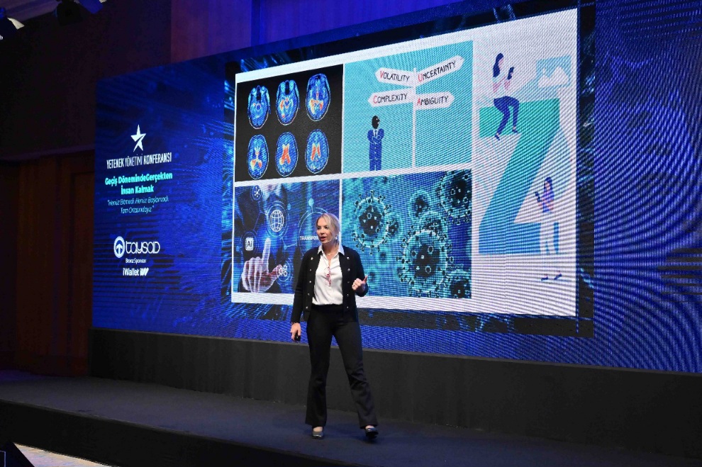 Bu yıl sekizincisi düzenlenen TAYSAD Yetenek Yönetimi Konferansı, “Yapay Zekâ Çağında İnsan Kalmak” temasıyla gerçekleştirildi. Açılışta konuşan TAYSAD Yönetim Kurulu Üyesi Nihan Sekirden Baraş, eski iş yapış biçimlerinin tam olarak terk edilemediğini, yeni iş modellerinin ise henüz hayatımıza entegre edilemediğini söyledi. Sekirden Baraş, “Kısacası dönüşümün tam ortasındayız. Elektrifikasyon, otonom sürüş, bağlantılı araçlar ve yapay zekâ destekli üretim süreçleri tüm çalışma biçimlerini yeniden tanımlıyor. Bu dönüşüm sadece teknolojik değil, aynı zamanda insan olmanın, liderliğin ve kurum kültürünün yeniden şekillendiği bir süreç. Yapay zekâ çağında yetenek yönetimi artık sadece teknik beceri veya verimlilikle sınırlı değil; aidiyet, etik farkındalık, empati ve psikolojik dayanıklılık öncelikler arasında” dedi.